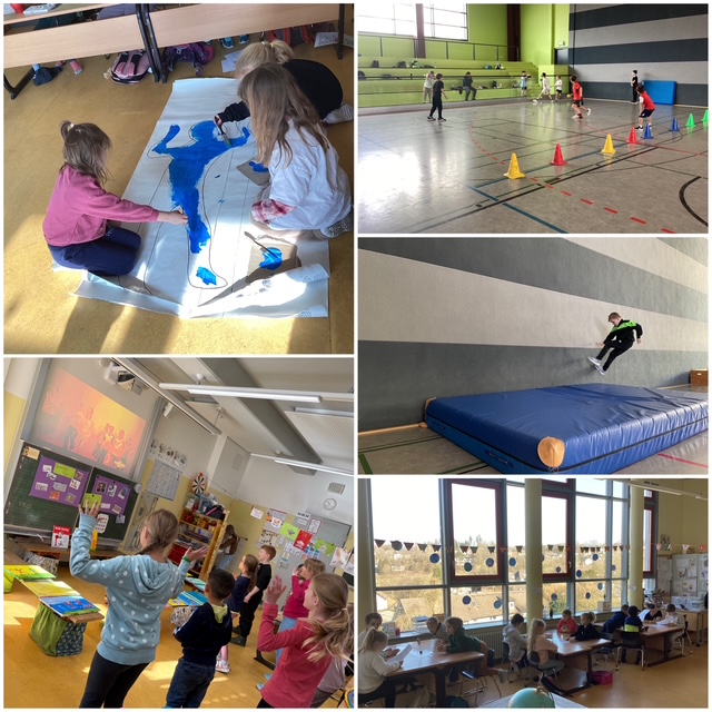Vom 10. bis 14. März drehte sich an unserer Grundschule alles um Bewegung, Sport und gemeinschaftlichen Spaß. Unter dem Motto „Kinder in Bewegung – Schule in Bewegung“ nahmen alle Schülerinnen und Schüler an zahlreichen sportlichen Projekten teil. Ob beim Tanzen, Klettern, Ballspielen oder in Bewegungsparcours – überall war zu sehen, mit wie viel Begeisterung sich die Kinder bewegten.