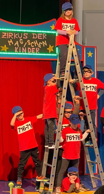 Am 03.12.2022 kam ich ins Gymnasium Nümbrecht. Wir wurden abgeholt und gingen in einen Umkleideraum. Dort bekamen meine Gruppe und ich eine blaue Kappe, eine schwarze Brille und ein rotes T- Shirt angezogen. Aufgeregt gingen wir in die Manege. Dort haben wir auf die Eltern gewartet. Endlich ging es los! Am besten fand ich die Hammer-Clowns, die Trampolinspringer, die Fotoclowns, die Menschenpyramide und schließlich die Seiltänzer. Ich fand das war ein toller Zirkustag.